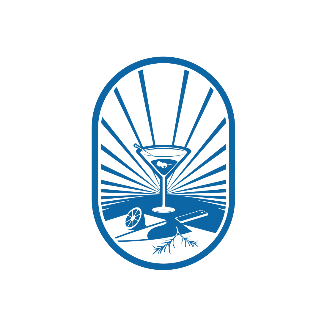 Herzstück ist ein Siegel aus illustrierten Elementen, kombiniert mit einer klassischen Typo und einem ruhigen Farbkonzept in Blau und Creme.